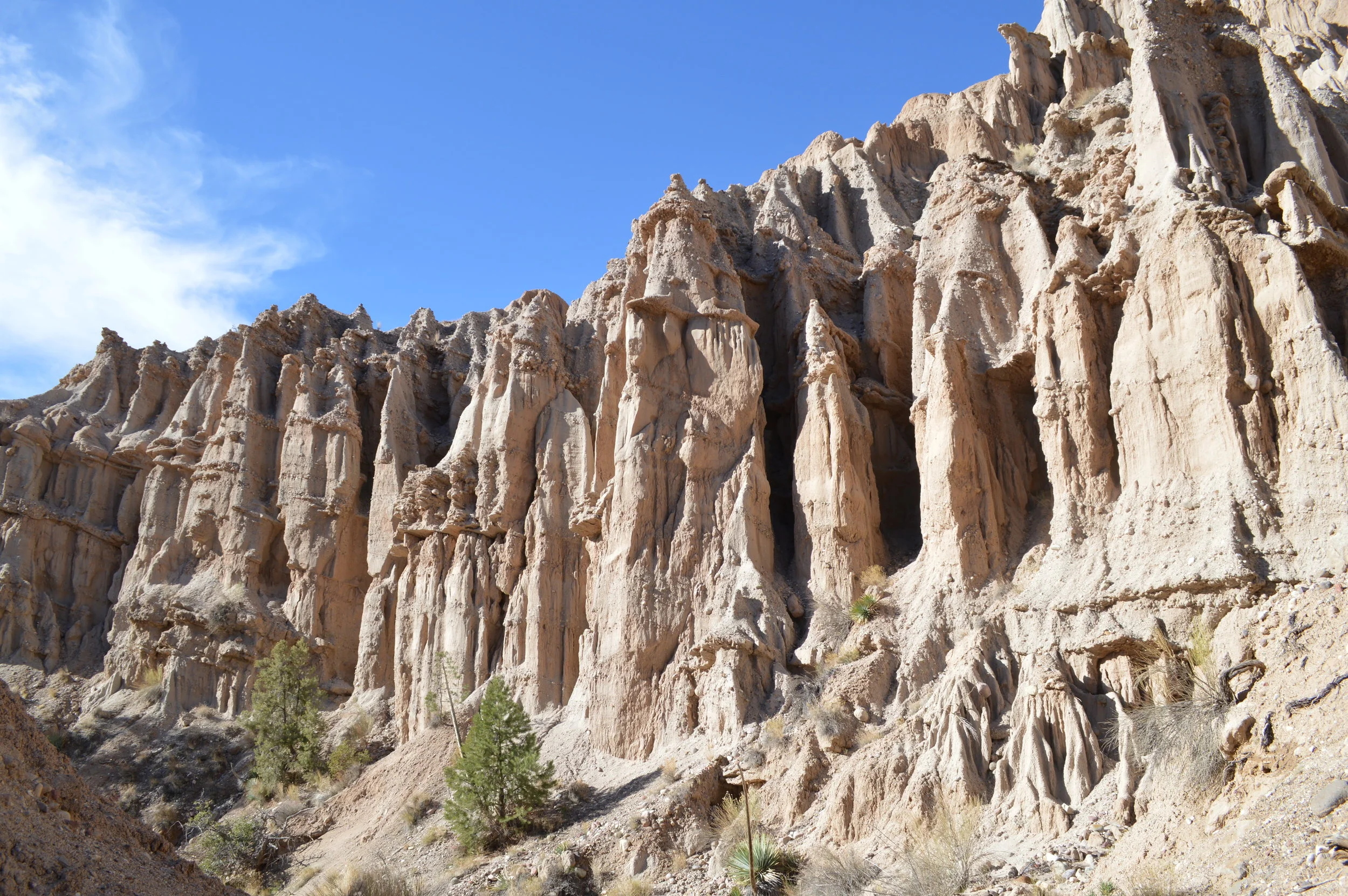 The Cuyama Badlands are an enclosed world of their own, bordered by piney mountains on all sides and seldom visited. Eroded over many years by waters descending from the surrounding peaks and fractured by fault activity, the gnarled landscape defies easy navigation or settlement. Some have built ranches or vineyards upon the mineral rich soils, but most who visit seem to pass through on off-road vehicles. Three rugged dirt roads provide the main outdoor access to this region: Quatal Canyon, Apache Canyon, and Dry Canyon. I traveled down Dry Canyon.