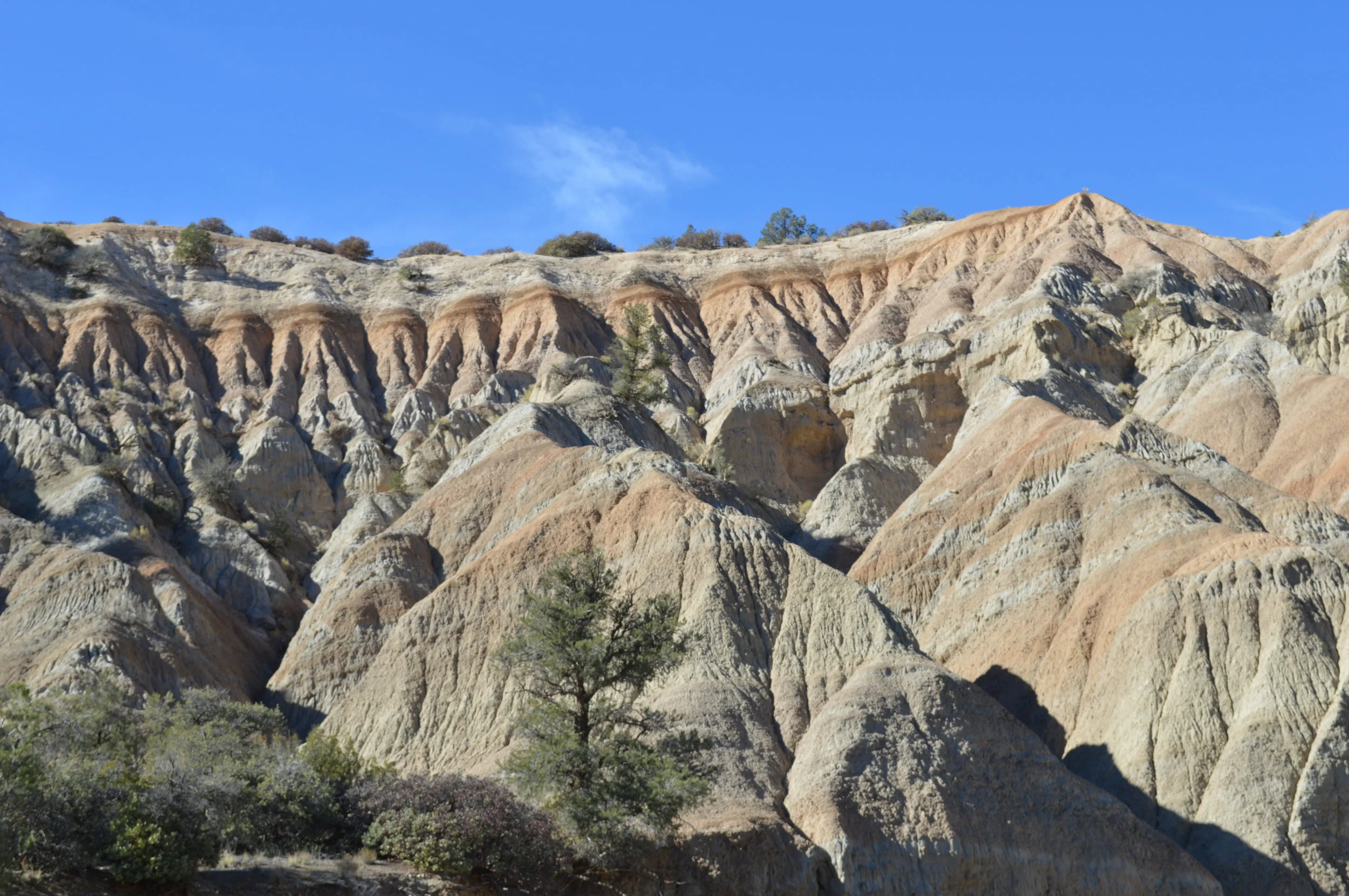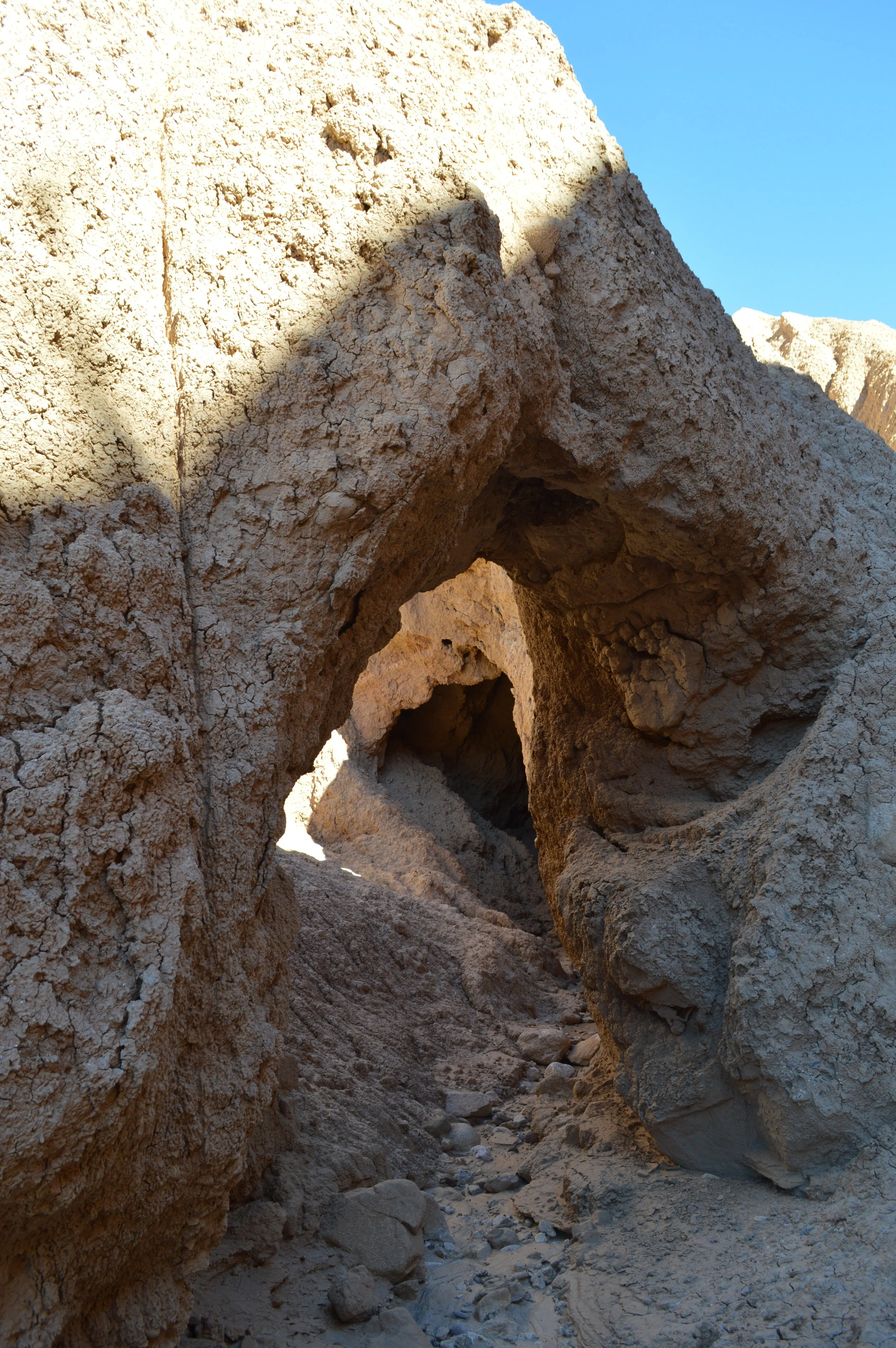 My journey took me to the end of Dry Canyon, where the hills rise in a jagged choir of red, pink, and white. The formations are incredible, reminiscent of the spectacular geology of the Mojave or what I imagine parts of Utah to be like. I came across hoodoos, arches, and mud caves, rocks of unbelievable color and shape. Dwarfed in the canyon corridors, enveloped in silence, I felt an ancientness and timelessness, myself a small blip in the Badlands’ millions of years of quiet witness. Archaeologists have discovered abundant fossils in these hills, and traveling among them, you are reminded of your own tiny role in the giant course of shifting geologic time. Here, you are very small.