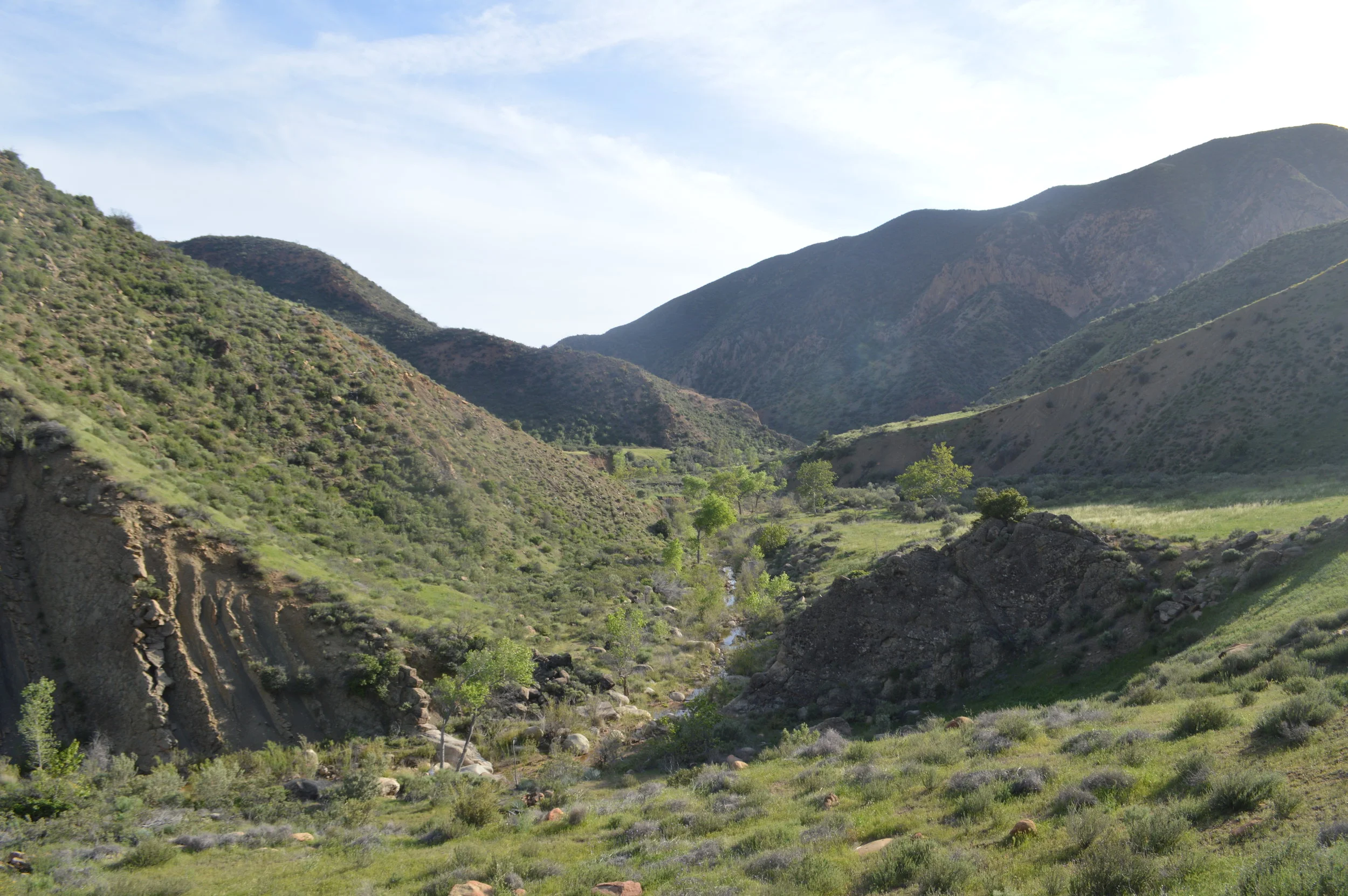The Big Caliente Hot Springs are one of the most popular destinations in our backcountry, but hardly anyone ventures past to see the canyon from which their neighboring creek flows. Those few who do will witness an almost untrammeled land, one vibrant with massive meadowlands and chaotic red rock. Though technically not even wilderness — the canyon is wedged between, but never enters, the Dick Smith and Matilija Wilderness areas — there are few places in Santa Barbara County accessible within a day that feel this wild, remote, or special.